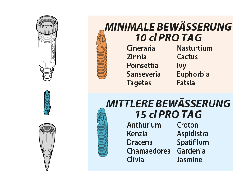 So wählen Sie den am besten geeigneten Tropfer für Ihre Pflanze. Autonomie mit 2-l-Flasche: max. 20 Tage.