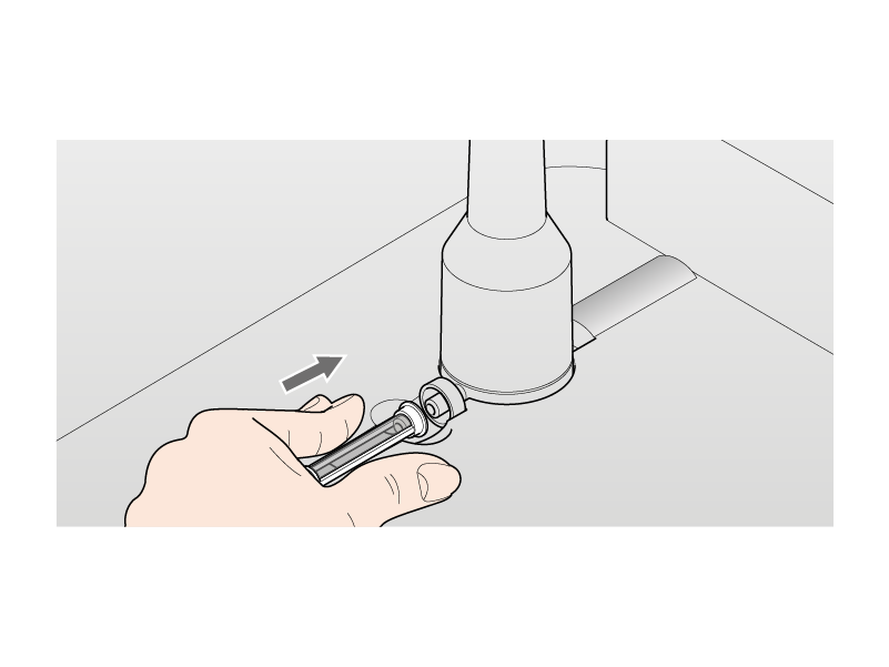 Wenn erforderlich, nehmen Sie den Filter heraus und spülen Sie ihn unter fließendem Wasser ab.