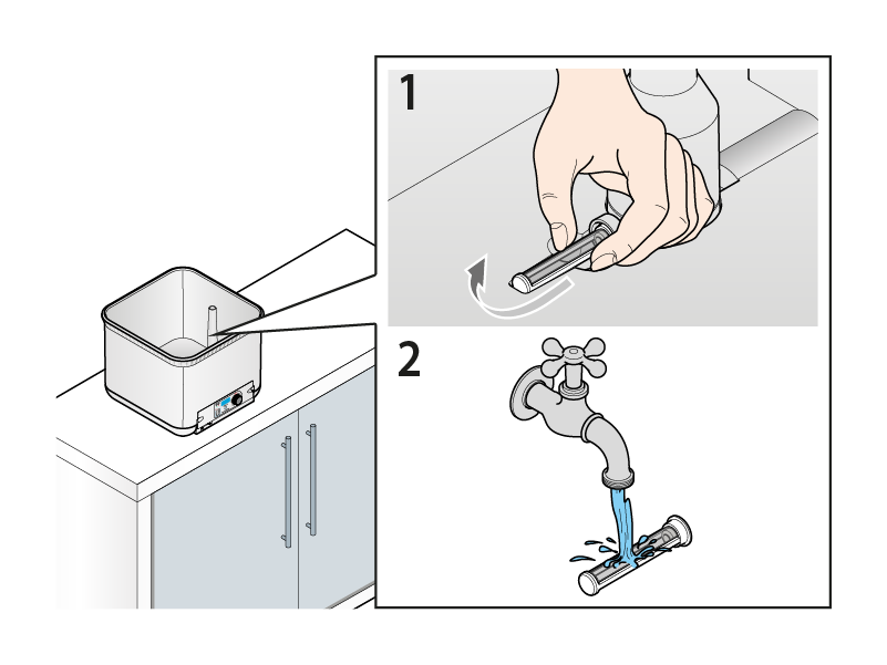 Die Tropfer können geöffnet werden und sind bei Bedarf zur Reinigung zugänglich: Nehmen Sie dazu die beiden Teile des Tropfers auseinander und spülen Sie sie unter fließendem Wasser ab.