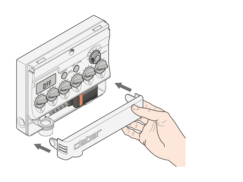 Die Funktion RESET schließt das Ventil, wenn es geöffnet ist, und schaltet den Bewässerungscomputer aus. Die Bewässerung wird unterbrochen bis zu einem neuen START+…- oder TEST-Befehl. Die Uhrzeit wird zurückgesetzt, während die Dauer und Häufigkeit unverändert bleiben. Um sie zu ändern, betätigen Sie manuell die einzelnen Schalter.