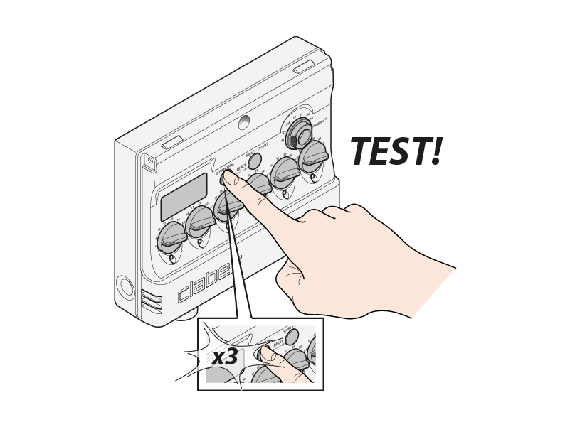 Drücken Sie dann wiederholt die Taste TEST, bis Sie den Kreis ausgewählt haben, den Sie aktivieren möchten; nach wenigen Sekunden wird das zugehörige Ventil für 5 Minuten geöffnet.