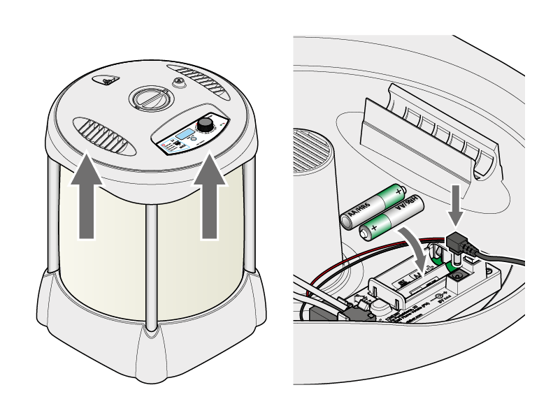 - per Steckdose und 1,2V NiMH Akkus mit mind. 2400 mAh vom Typ AA/HR6, wodurch die Bewässerung auch dann gewährleistet ist, wenn eine der beiden Stromquellen ausfällt.