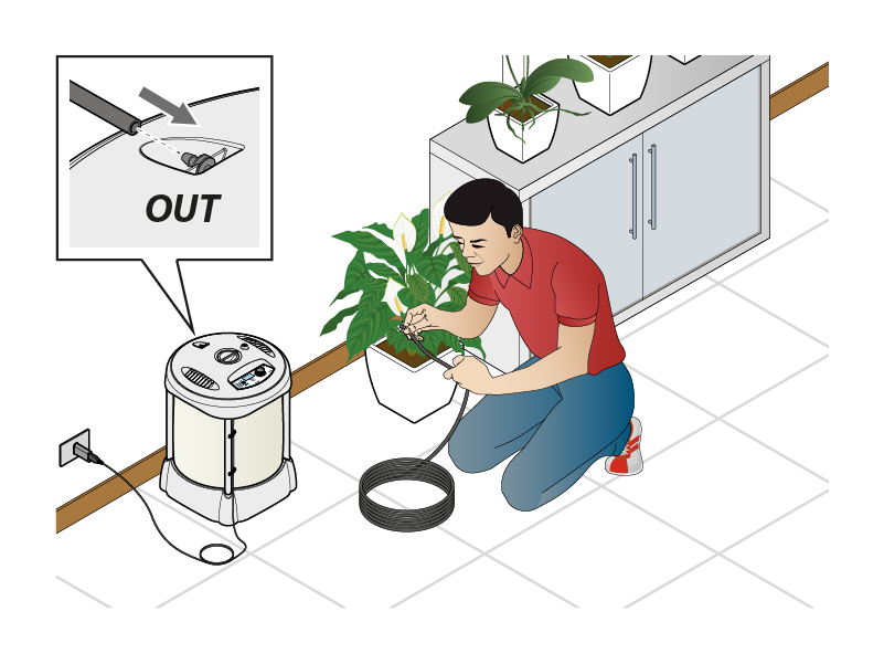 Unabhängig vom Wasserstand im Behälter, sofern Wasser vorhanden ist, gibt Aqualux basierend auf dem gewählten Programm jeden Tag dieselbe Wassermenge an ihre Topfpflanzen ab.