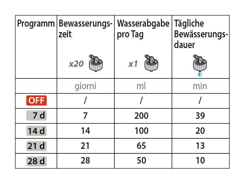 Nach dem ersten Start finden die nächsten Bewässerungen an den restlichen Tagen alle 24 Stunden statt.