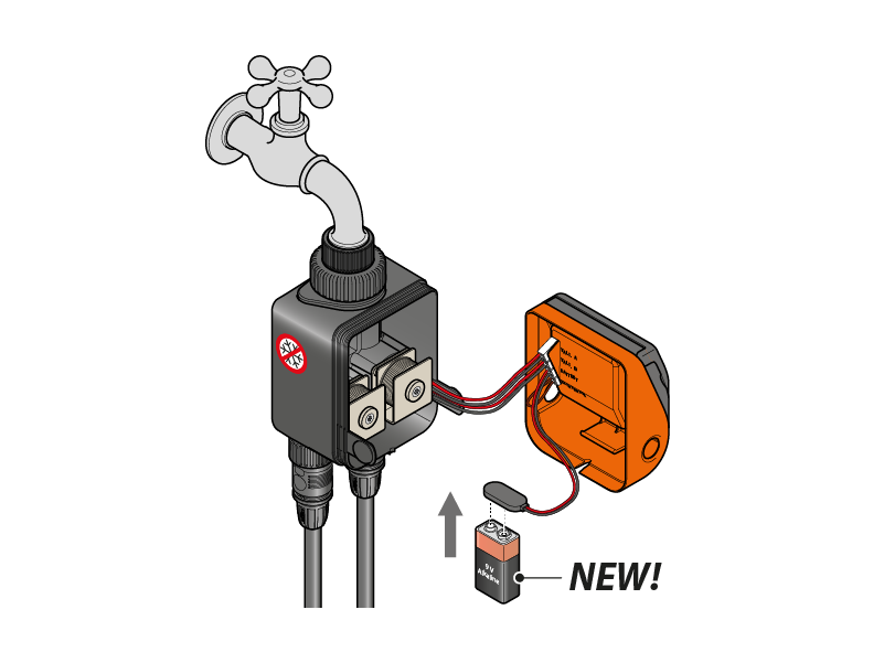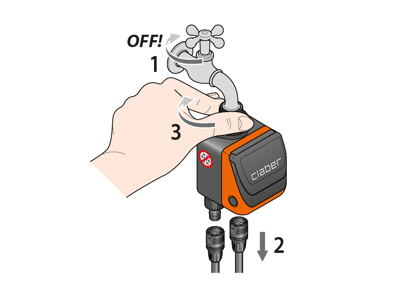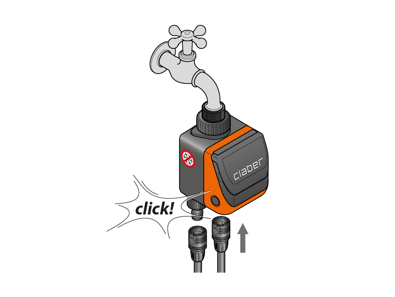 Schließen Sie den Bewässerungscomputer an den Wasserhahn an und verbinden Sie ihn mit der Anlage.