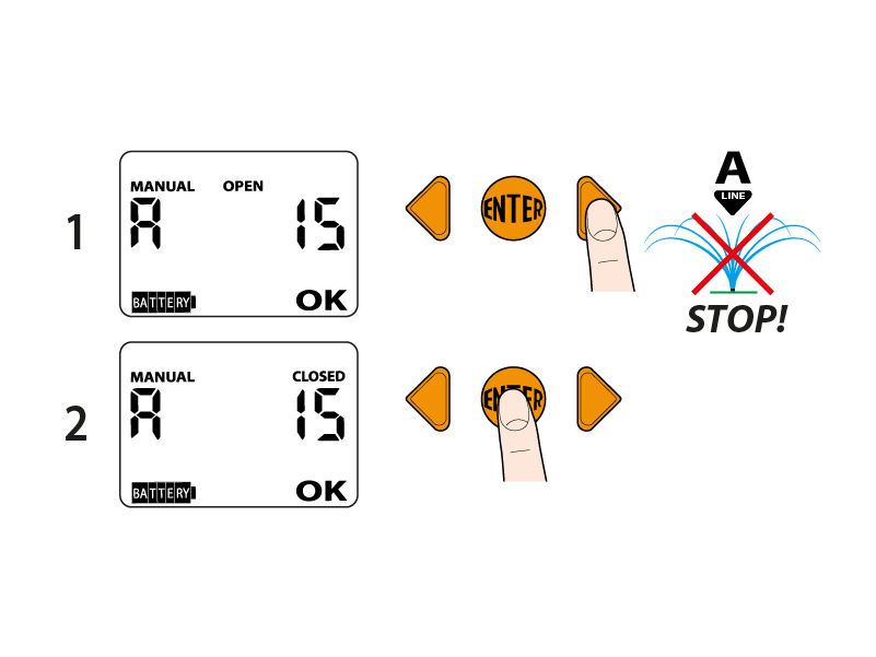 Zum Unterbrechen der Bewässerung drücken Sie die rechte Pfeiltaste und dann ENTER.