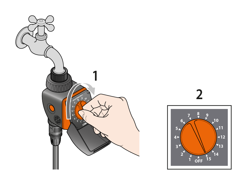 Zu der Uhrzeit, zu der die Bewässerung starten soll, stellen Sie den Drehschalter auf das gewünschte Programm.