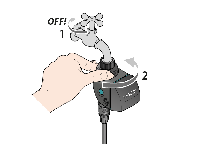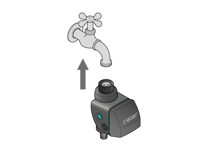 Schließen Sie den Bewässerungscomputer an den Wasserhahn an und verbinden Sie ihn mit der Anlage.