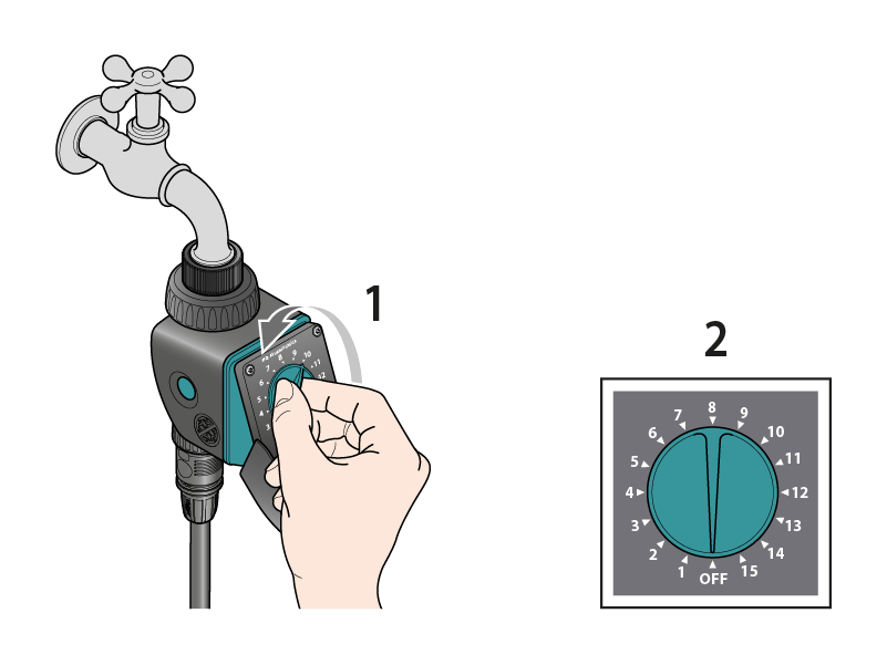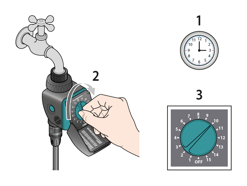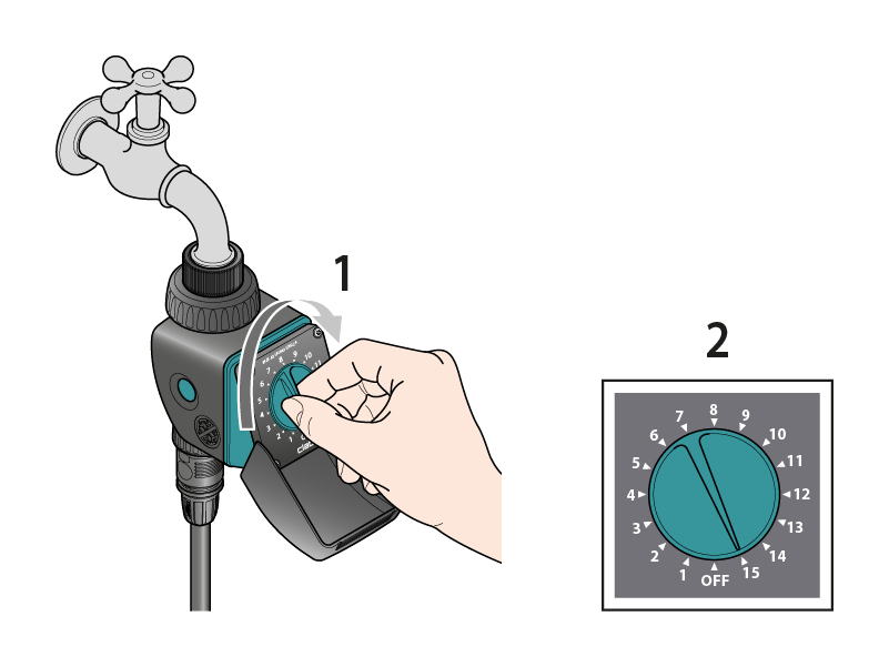 Zu der Uhrzeit, zu der die Bewässerung starten soll, stellen Sie den Drehschalter auf das gewünschte Programm.