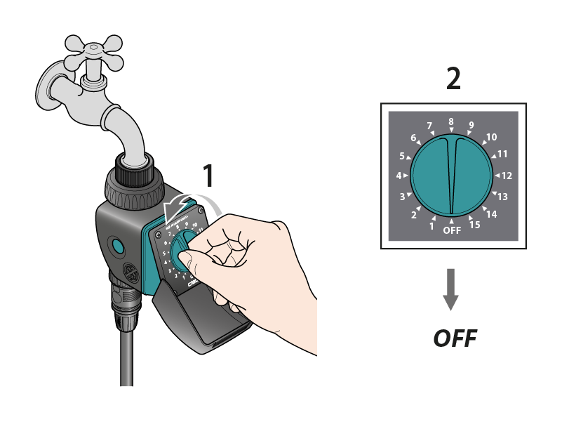 Das Bewässerungsprogramm kann jederzeit verändert werden. Stellen Sie dazu den Drehschalter zunächst auf OFF.