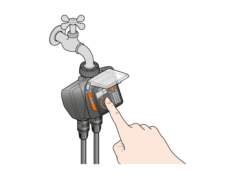 Installieren Sie den Bewässerungscomputer nicht in Ventilbox underirdisch oder in Gebäuden. Verwenden Sie Leitungswasser oder filtern Sie das Wasser. Verwenden Sie das Bewässerungscomputer nicht mit chemischen Substanzen oder anderen Flüssigkeiten als Wasser. Verweden Sie des Bewässerungscomputer nicht mit einem Betriebsdruck von unter 0,5 bar (7,3 psi) oder über 10 bar (145 psi). Denken Sie daran, den Wasserhahn zu öffnen und die Abdeckung des Bewässerungscomputers zu schließen.