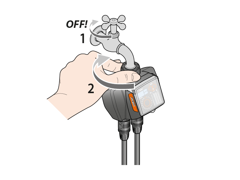 Schließen Sie den Bewässerungscomputer an den Wasserhahn an und verbinden Sie ihn mit der Anlage.