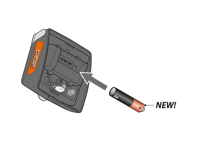 Wenn vorhanden, entfernen Sie die leere Batterie. Setzen Sie die neue Batterie unter Beachtung der Polarität in die Halterung ein.