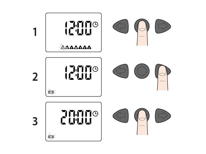 Falls erforderlich, stellen Sie die nächsten STARTZEITEN 2, 3, 4 ein, indem Sie auf die rechte Pfeiltaste drücken und die bereits beschriebenen Schritte wiederholen.