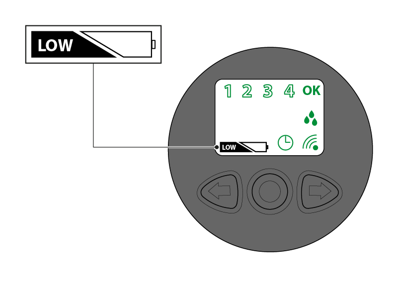 Für seinen Betrieb benötigt der Bewässerungscomputer zwei 1,5V-Alkali-Batterie vom Typ AAA LR03, die immer bei Saisonbeginn ausgewechselt.