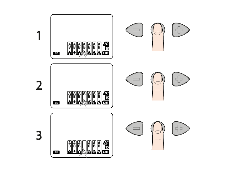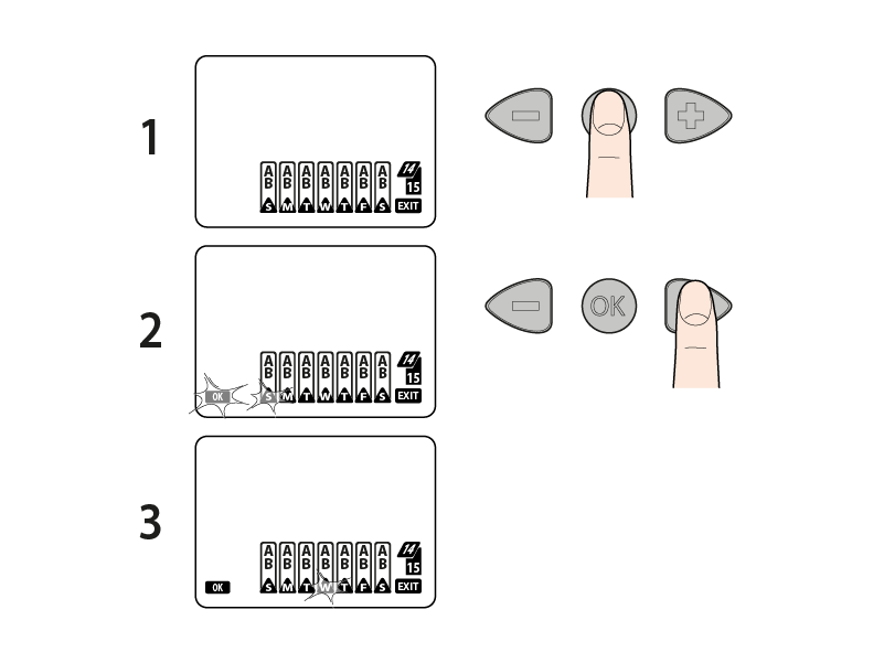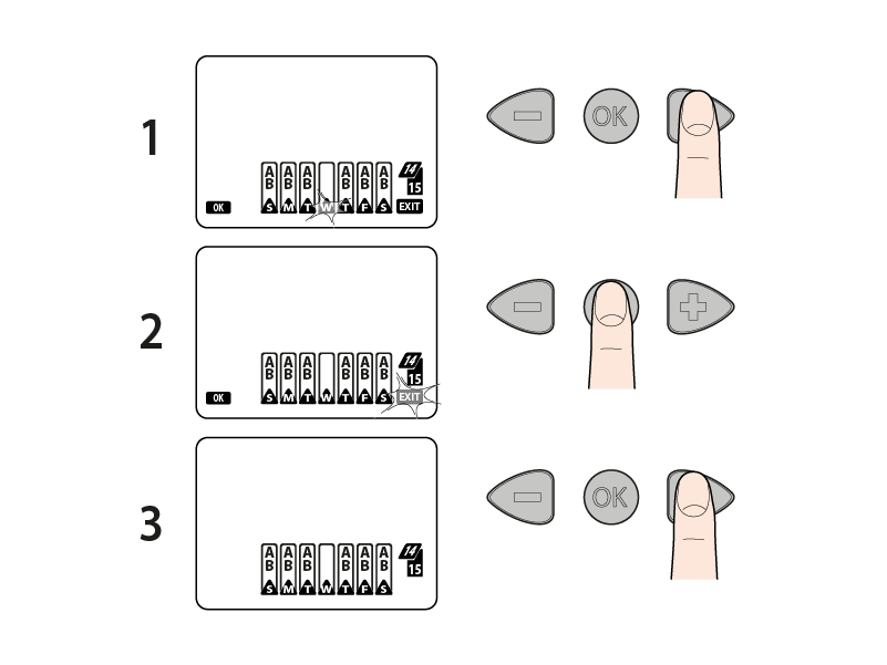Stellen Sie mit den Pfeiltasten den Wochentag ein und drücken Sie OK.