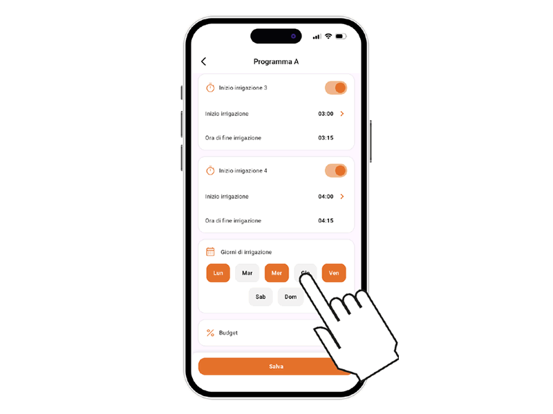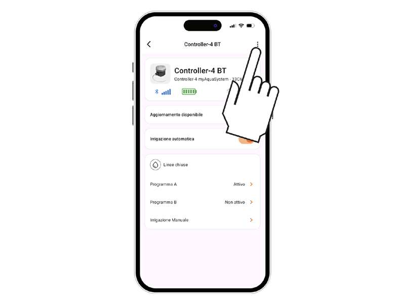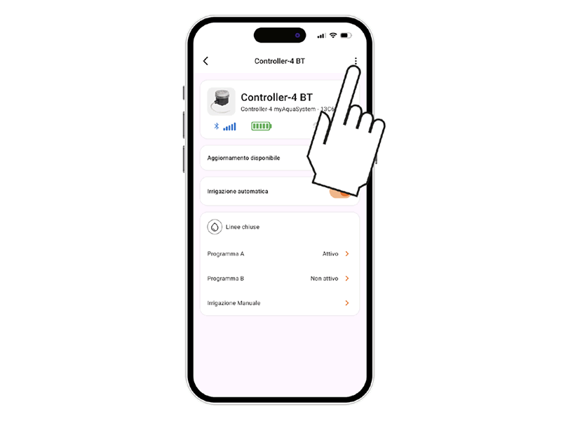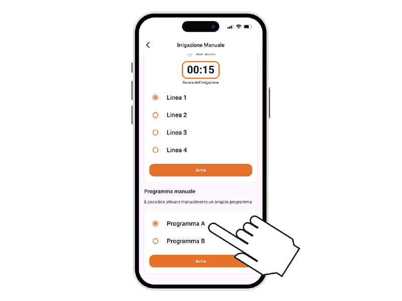 Controller4 BT bietet 2 Bewässerungsprogramme, A und B, die Leitungen nacheinander oder teilweise öffnen können. Wählen Sie das gewünschte Programm.