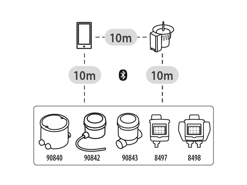 Während der Kommunikation zwischen App und Steuergerät müssen Sie sich innerhalb eines Radius von 10 m vom Sensor befinden.