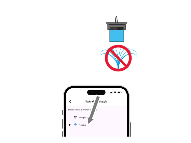 Wenn der Behälter des Rain Sensor voll ist (Niederschlag von mindestens 5 mm/m2), sendet er ein Stoppsignal an die über die myClaber-App verbundenen Steuergeräte. Wenn das Wasser verdunstet ist, sendet der Rain Sensor ein Signal zum Wiederaufnehmen der Bewässerung.