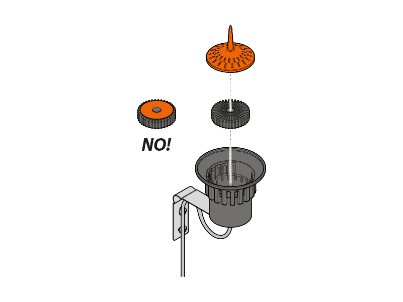 Für den korrekten Betrieb des Sensors positionieren Sie den Schwimmer im Behälter so, dass die speziellen radialen Rippen nach oben und der orange Boden nach unten zeigt. Die obere Abdeckung muss geschlossen bleiben, damit keine Blätter oder Verunreinigungen den Betrieb des Rain Sensor beeinträchtigen können.