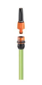 Automatische Kupplung Ergogrip für Schläuche mit Durchmesser Ø 1/2” (12,5 mm) - Ø 5/8” (15 mm). Die spezielle gummibeschichtete Oberfläche gestattet einen perfekten Grip in der Hand. Frei von metallischen Teilen und somit vollständig rostfrei, stoßfest, witterungsbeständig, UV-beständig und beständig gegen einen sehr hohen Wasserdruck. Ausgerüstet mit einem Ventil zum automatischen Stoppen des Wasserflusses; wird im Endstück des Schlauchs montiert, und beim Abkuppeln der Kupplung wird der Wasserfluss gestoppt.