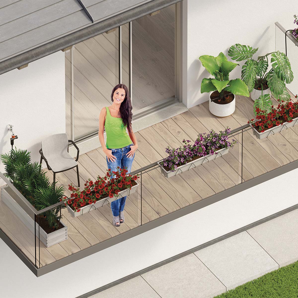 Ein einsatzbereites Kit für die optimale Bewässerung der Pflanzen auf der Terrasse oder in Beeten, das die Regulierung des Wasserflusses ermöglicht und so an die verschiedenen Anforderungen angepasst werden kann. Inklusive aller benötigen Anschlüsse für die Realisierung einer Tropfbewässerungsanlage für bis zu 25 Pflanzen mit regulierbaren Reihentropfern Plus und 25 m Tropfschlauch. Kann nach Belieben erweitert werden.
