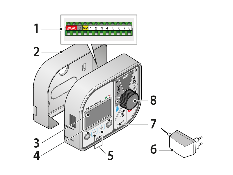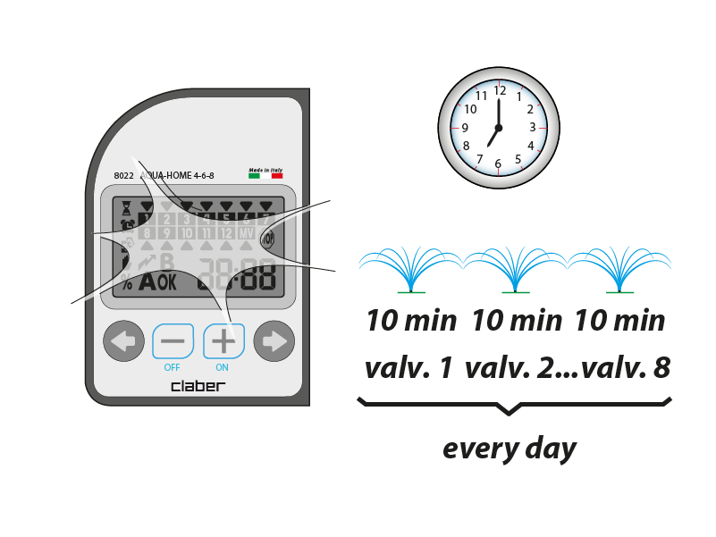 The timer can be used to control a minimum of 1 to a maximum of 8 valves 24V.