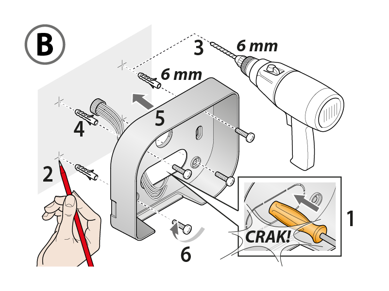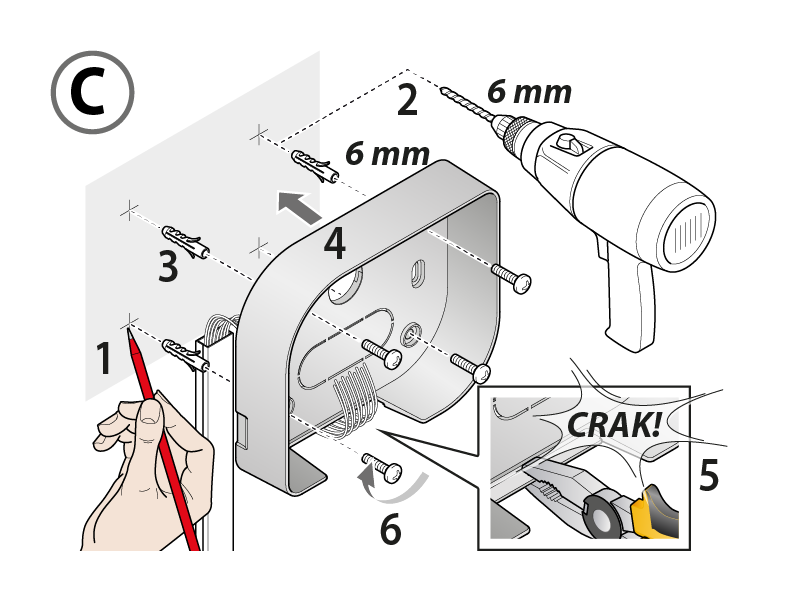 The timer casing can be fixed to the wall in three different ways.