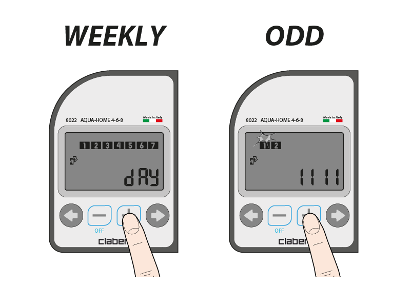 On these programming pages set the irrigation frequencies: weekly programming; programming on odd days;