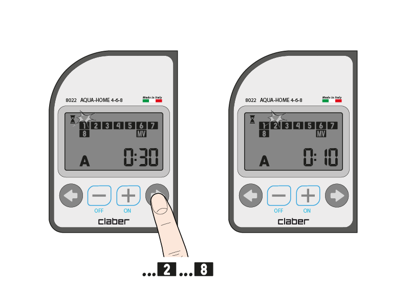 The programming method is the same for all 8 valves, for both programme A and programme B.