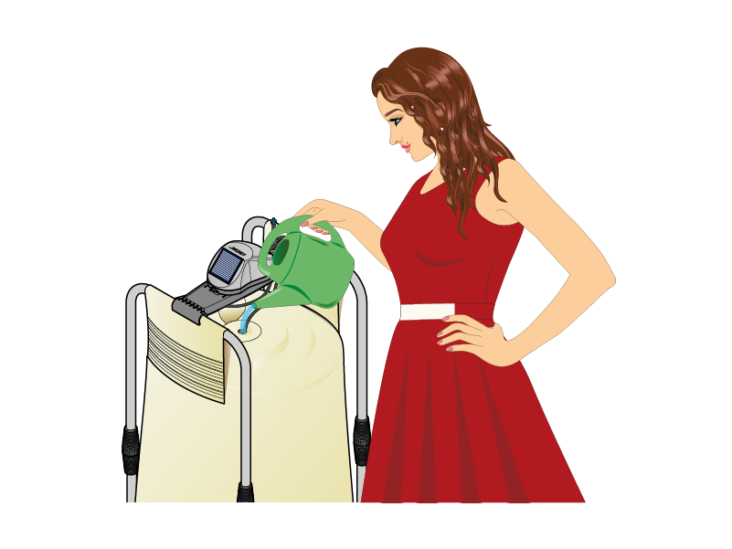 To fill the PVC tank sack, lift up the central hole cover and pour in the water using a watering can. The Aqua-Magic timer uses the water it needs for the drip-irrigation system to operate.