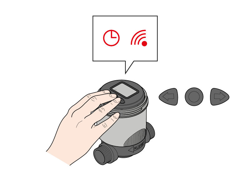 Each change made from the RF remote control must be transferred to the RF solenoid valve. After replacing the RF solenoid valve batteries, synchronise the time from the RF remote control in the same way.