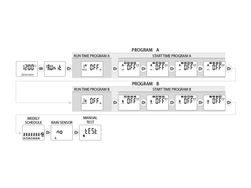 N.B. Programme A irrigation cycles can overlap with programme B irrigation cycles (if there is an insufficient flow rate in the system, this may affect the irrigation quality).