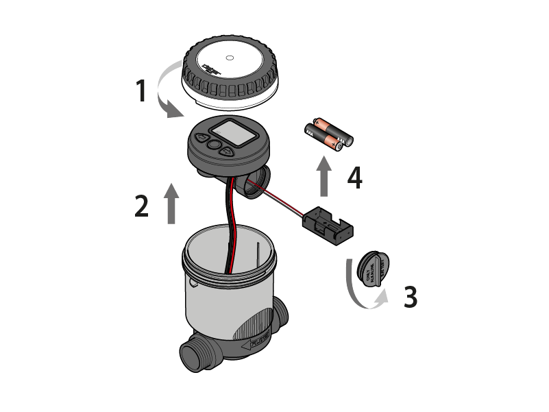 Once the batteries are fitted, an initialization routine will start (display Leds light up in sequence, valves close in sequence).