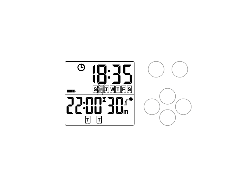 The water timer has an internal calendar so once the date has been set, the day of the week (for example, Monday) is recognised automatically.