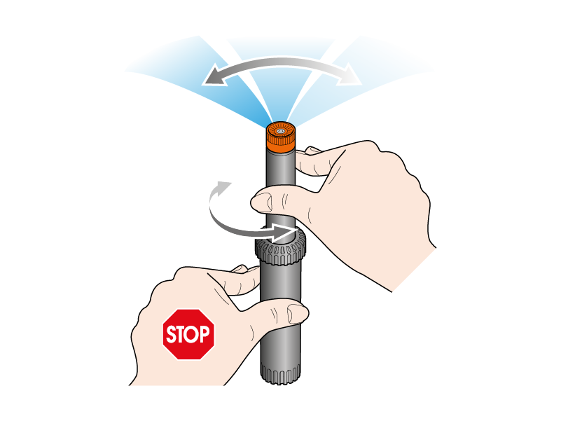 Turn the stem clockwise or anticlockwise while the body of the sprinkler is held fast.