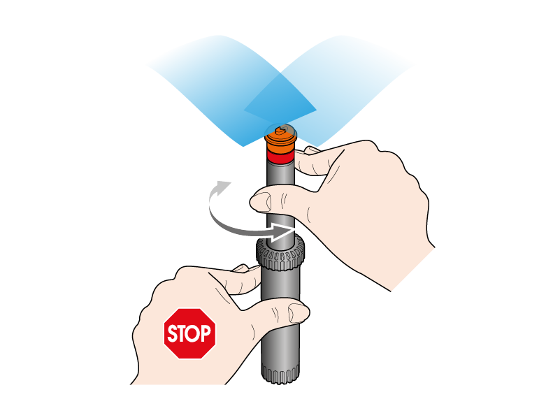 Turn the stem clockwise or anticlockwise while the body of the sprinkler is held fast.