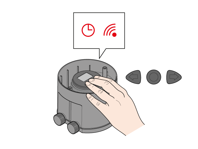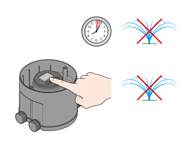 The red colour of the clock symbol, whether permanently alight or blinking, warns that the RF unit is not currently programmed for automatic watering.