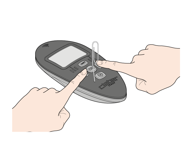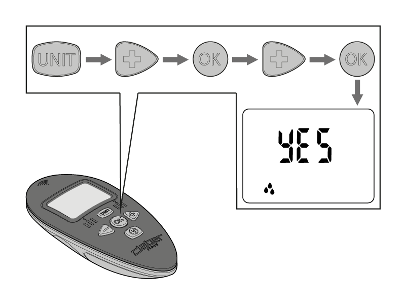 Press the three RF Hydro-4 buttons at the same time and hold for at least 5 seconds, until the red LEDs with the CLOCK and RF symbols start to flash.