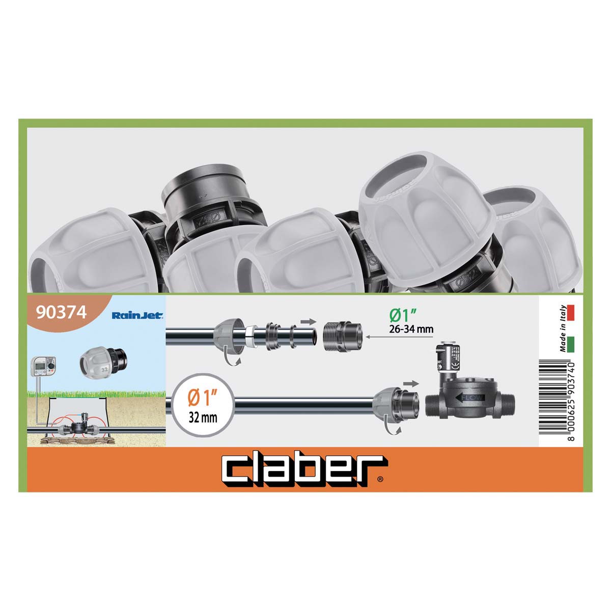 For connecting a polyethylene tube to a 1” (26-34 mm) male threaded water supply or the connectors to the solenoid valves (cod. 90813-90815).