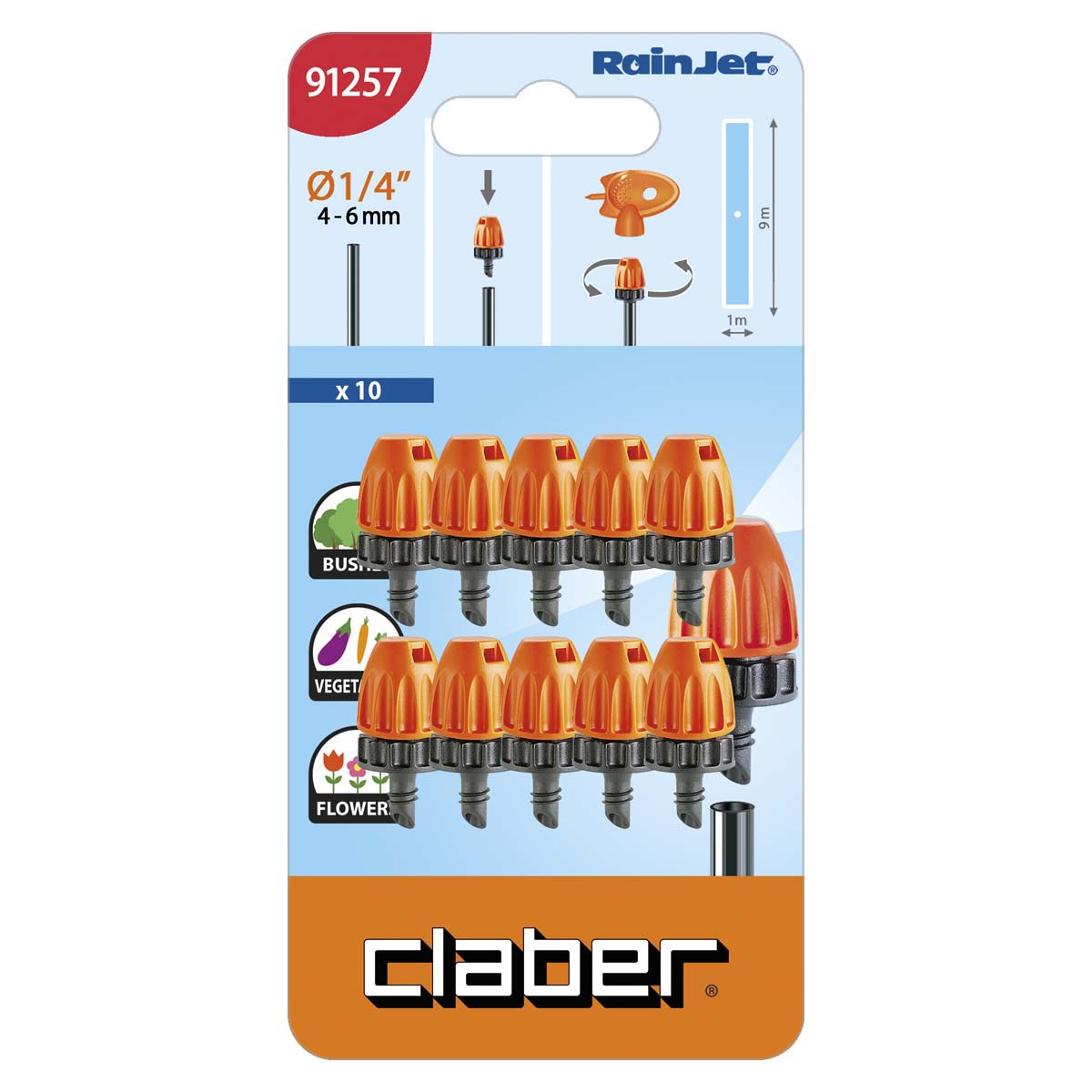 Used for watering rectangular strips. Used either into the 1/2” (13-16 mm) main tube, the 1/4” (4-6 mm) feeding tube, or on fitted rigid risers for overhead installation. Blister of 10 pcs. Irrigated area max. 6,8 m².