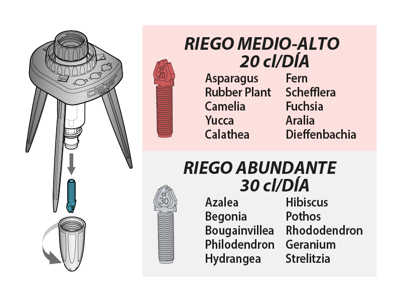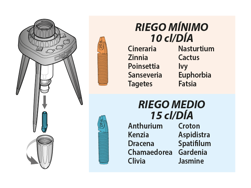 Escoja el gotero más adecuado según el tipo de planta.