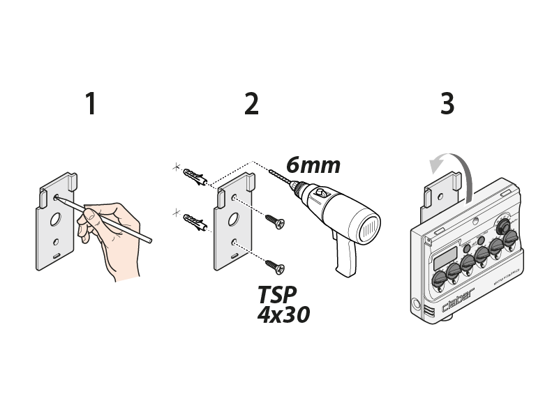 Fije el programador a la pared en un local sin humedad, protegido de la intemperie y de salpicaduras de agua y con temperaturas de entre 0 °C y 50 °C. No instale el programador al aire libre ni dentro de arquetas enterradas.