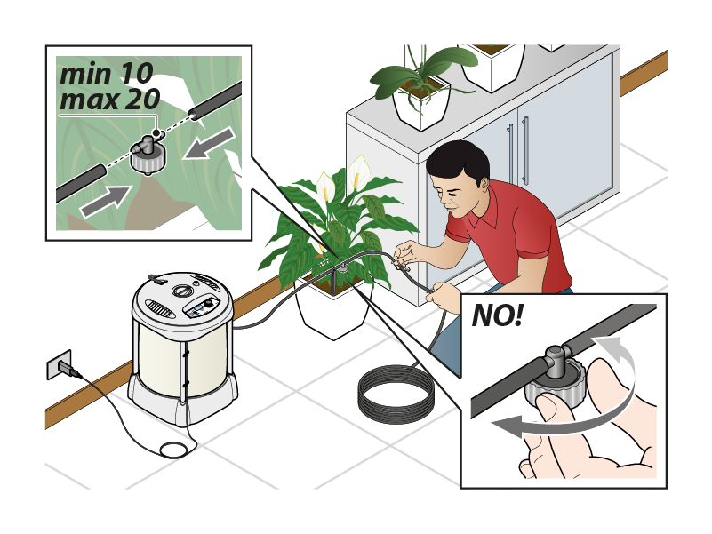 Conecte los goteros con el distribuidor orientado hacia abajo.