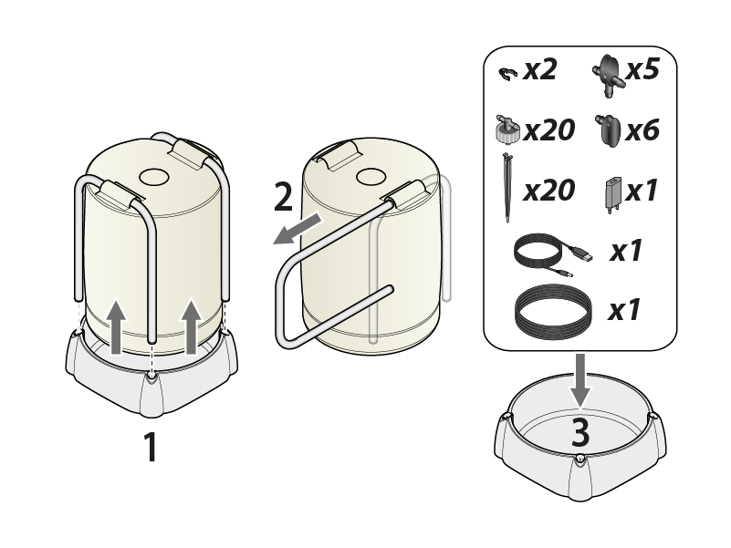 Coloque las macetas (con sus platos), respetando las alturas indicadas.