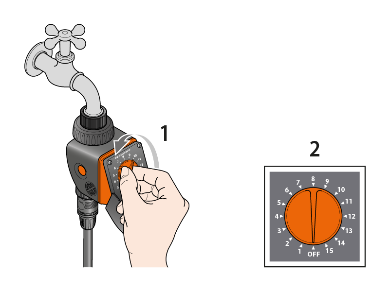 A la hora a la que se desea que comience el riego, gire el selector hasta el programa deseado.