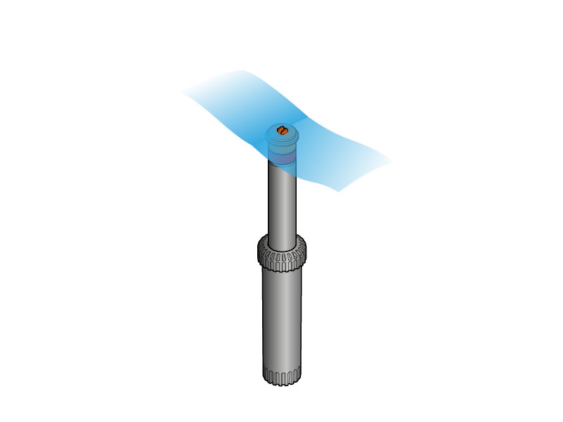 Gire la varilla hacia la derecha o izquierda, manteniendo bloqueado el cuerpo del aspersor.