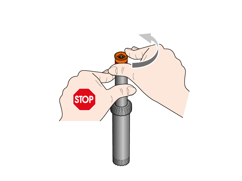 La penetración de guijarros, arena, tierra u otros cuerpos extraños en el cabezal podría provocar problemas en el funcionamiento de los aspersores. Lleve a cabo la limpieza de la siguiente manera: mantenga bloqueada la varllla del aspersor con un mano y desenrosque la parte superior con la otra mano;