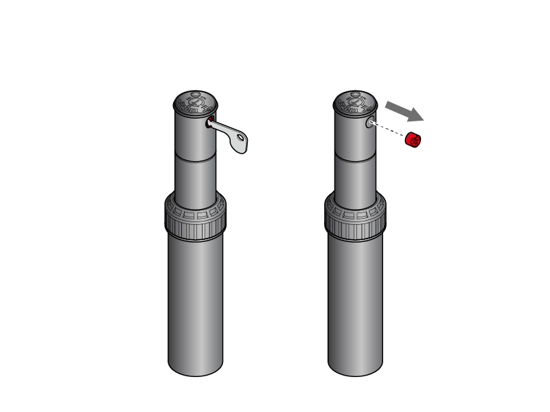 El aspersor empieza a trabajar desde este punto, girando hacia la derecha.