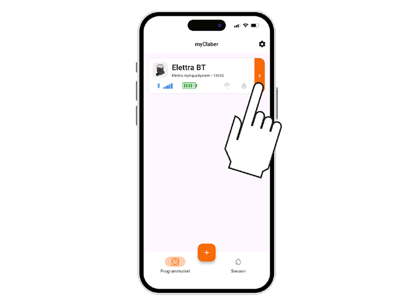 Programador controlable exclusivamente mediante smartphone a través de la app myClaber usando tecnología Bluetooth®.